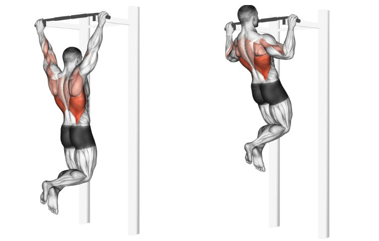 Широкият гръбен мускул се активира повече при дърпащи упражнения във вертикалната равнина т.е. при издърпване на тежест отгоре надолу и назад към тялото, както е при различните варианти на пул-даун, набиране, различни машини и други. При всяко от тях има различна степен на събиране на лопатките една към друга, но то е по-малко отколкото при гребни движения, съответно и натоварването на трапецовидния мускул е по-малко.